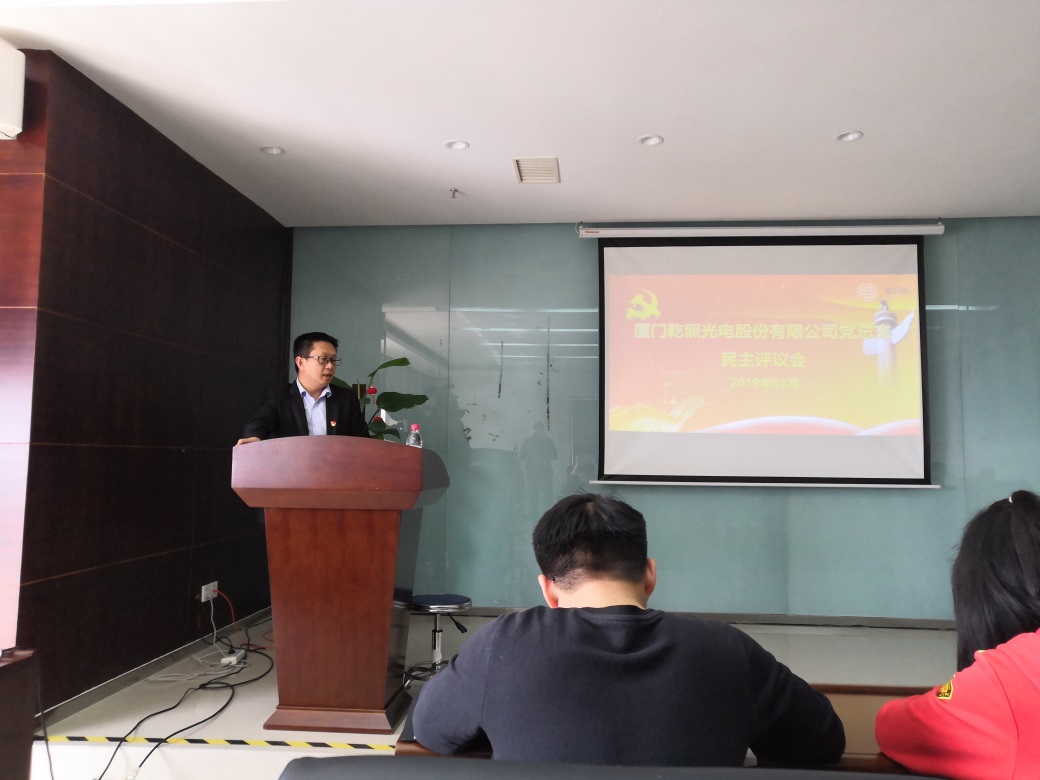 按照上级党委的统一部署要求,2月27日,中共厦门乾照光电股份有限公司总支部委员会召开了民主评议党员大会,公司全体党员参加,入党积极分子列席。会议由党总支书记、乾照光电副总裁牛兴盛主持。