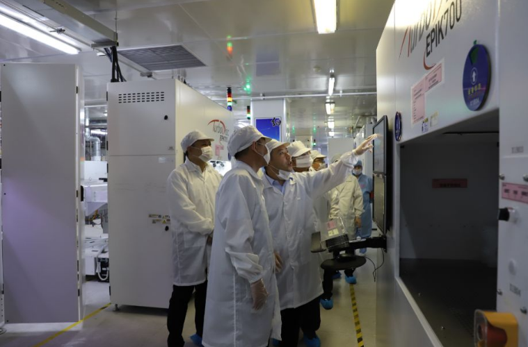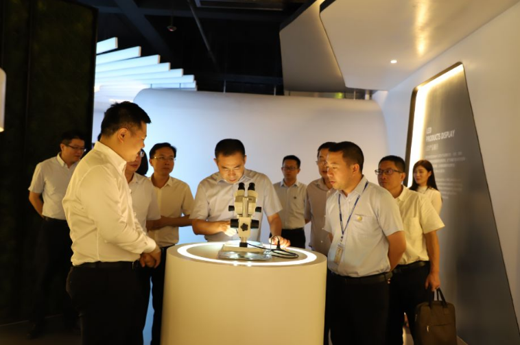 考察组一行参观了公司展厅,了解乾照光电的发展历程,体验公司产品在照明、显示、背光、航天等终端应用领域的成果,深入到生产车间了解研发和生产过程。各位领导对我司产品的高技术含量、生产制造的工艺水平以及自动化普及程度均表示赞同和认可。