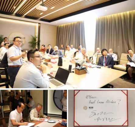 不谋全局者不足以谋一域。乾照光电积极构筑制造业总部,大力布局化合物半导体领域前沿项目。在厦门、南昌、扬州布局蓝绿光LED外延片和芯片、砷化镓新型太阳能电池、3D感测激光VCSEL芯片、Mini LED和MicroLED芯片规模化量产等前沿产业项目。中村教授对乾照光电未来的规划表示赞赏,他说,乾照光电已经拥有了全色系的LED产品,这是很大的优势,相信公司一定会有很好的前景,同时也勉励乾照光电年青的科研团队要“Stay hungry”(保持对知识的渴望)。中村教授离开公司前,写下了 “When Red Laser Diodes?”的寄语,激励乾照光电要始终走在产业的最前沿。