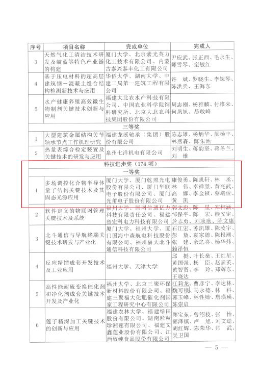 热烈庆祝乾照光电荣获福建省科技进步奖一等奖