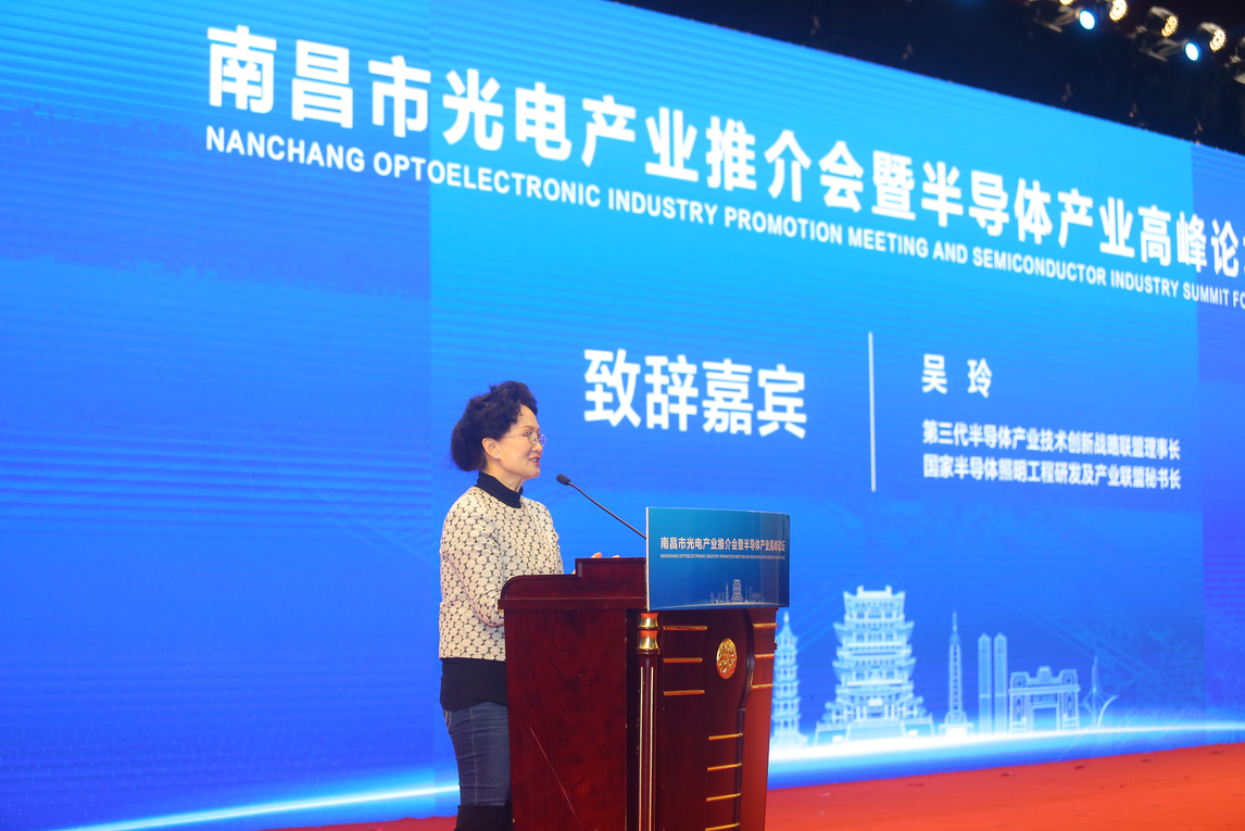 吴玲秘书长在致辞中指出,回顾半导体照明十余年的发展,我国从无到有、从小到大,特别是芯片的国产率已接近80%。但国际环境的变化、经济下行的压力,导致半导体照明产业增速放缓,整个LED行业处于寒冬。在南昌市政府的大力支持下,南昌市的半导体产业仍然保持了良好的发展态势。越是艰难,越能发现机会。她相信随着LED芯片功能的进一步开发,未来还将会有很大的发展空间。她也相信半导体照明这个战略性的新兴产业,做为第三代半导体第一个成功的应用,在智能信息化的绿色可持续发展中,必将越做越强。
