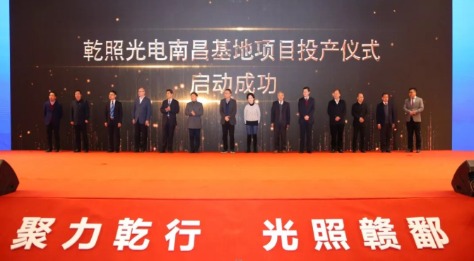 十、12月7日,乾照光电南昌基地项目正式投产。项目分两期共投资50亿元,2018年1月正式动工,2018年12月一期工程建成并投产。一期工程的正式投产,将为乾照光电新增80万片/月(折合2英寸)的氮化镓LED外延片和芯片产能,使乾照光电的氮化镓LED外延片和芯片总产能达到120万片/月。