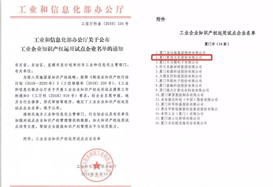 入选国家工业和信息化部公布的“工业企业知识产权运用试点企业名单”