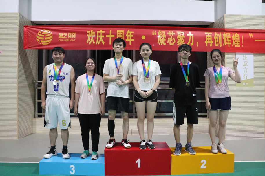 经过了几天的激烈角逐,来自芯片制造部的王俊凭着沉着冷静的心态和娴熟的球技一举拿下了男单、男双、男女混合双打的桂冠,可谓是全场男生组的大满贯;同样,女生组来自芯片研发部的夏招金在赛场上一拍即出,挥洒自如,最后成功夺得本届女单、女双和男女混合双打的冠军。