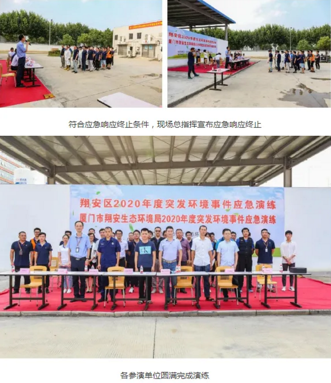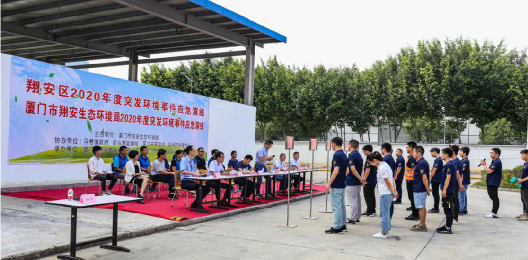2020年9月4日下午4点,由厦门市翔安生态环境局主办,翔安区应急管理局、翔安区公共安全办区、翔安消防救援大队、马巷镇政府协办,厦门乾照光电股份有限公司、厦门市正巽环保科技有限公司承办的2020年度翔安区突发环境事件应急演练在厦门乾照光电股份有限公司举行。
