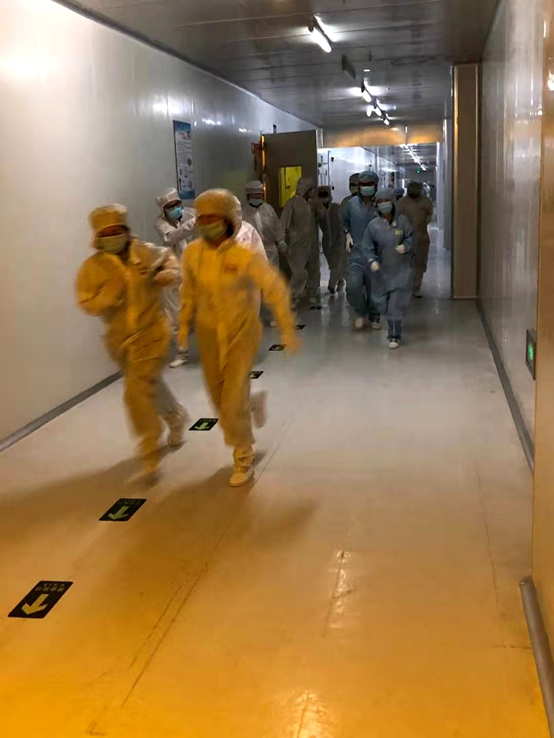 本次演练以16:19蒸镀车间发生火灾为假想场景,由初期自行应急处置和启动应急响应机制两部分组成。整个演练过程紧紧围绕发现火情、预警及响应、应急处置、指挥协调、人员疏散、集合清点、接触警报等重点环节展开。16:21应急疏散演练指挥部下达撤离命令,要求全体人员在疏散引导员组织下沿安全疏散通道快速撤离。16:24全体人员到达紧急疏散集合地点,合计耗时5分14秒。本次演练全程协调有序、示范性强,情景逼真。