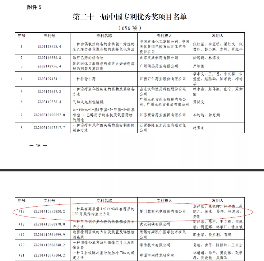 七、乾照光电获评国家知识产权局中国专利优秀奖
