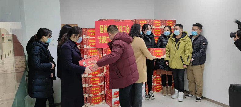 2月9日,扬州市经济技术开发区总工会对扬州乾照主动留扬过年、加班加点的员工进行慰问,特地送上春节大礼包表示敬意。扬州乾照近150名省外留扬留岗人员接受慰问。