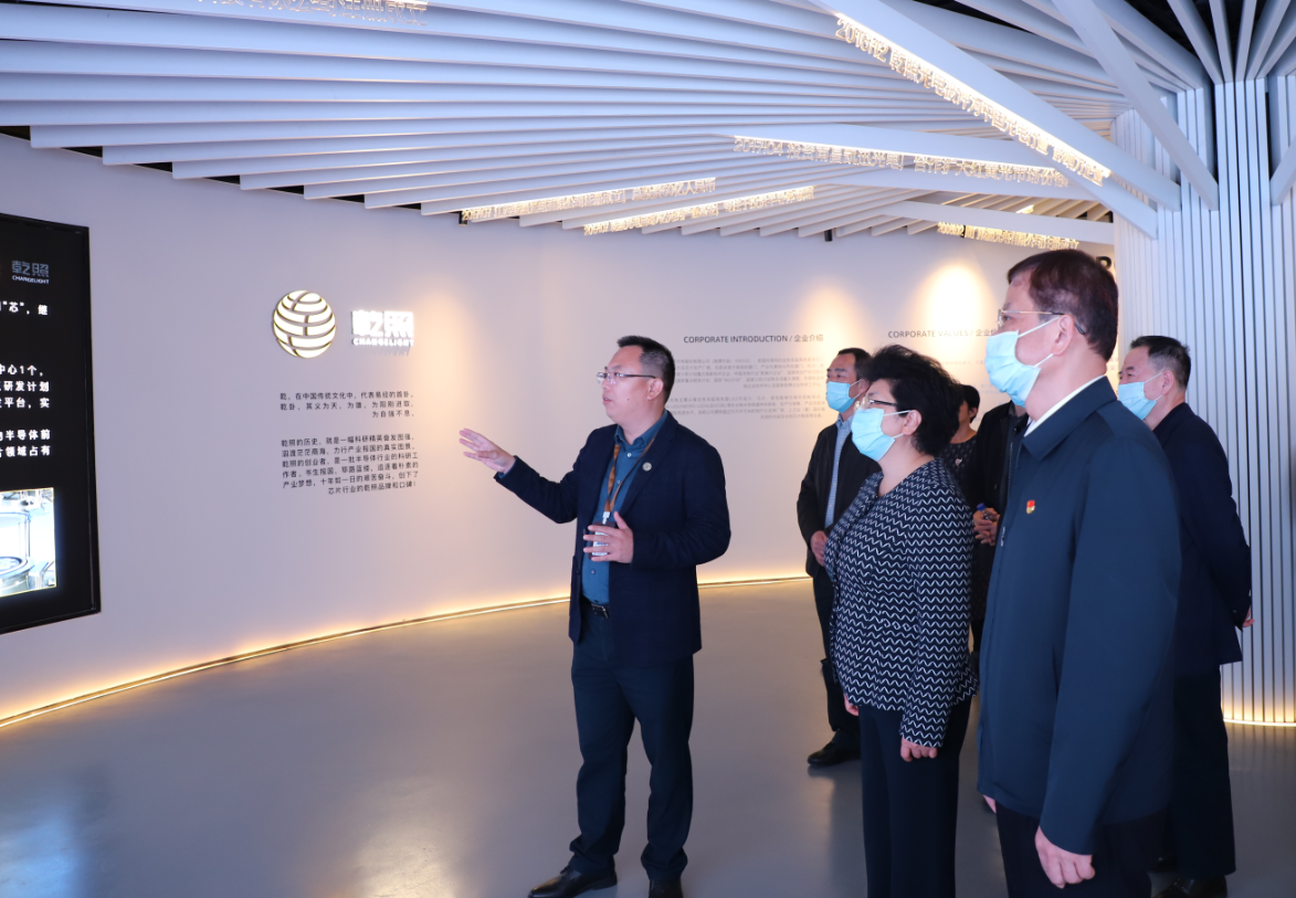 吴洪芹一行首先参观了公司展厅,详细了解了公司在高性能砷化镓太阳电池外延片、Mini-LED/Micro-LED及化合物半导体相关领域的发展情况和发展规划。期间,吴洪芹高度肯定了乾照光电当前阶段取得的成绩,并在企业发展方面提出了相关建议。吴洪芹指出,按照省委“再学习、再调研、再落实”要求,认真贯彻落实科技进步“一法一例”,大力实施创新驱动发展战略,提高科技自立自强能力,不断壮大高质量发展超越新动能;要强化人才培养引进,激发人才创新创业创造活力;支持高校、科研院所、企业组建创新联合体,推动协同创新。