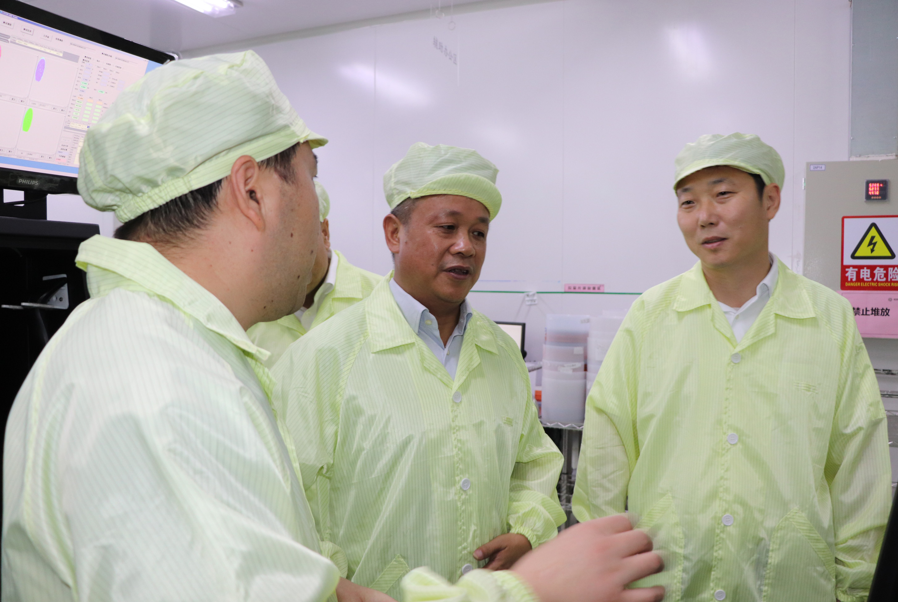随后调研组一行前往外延片、芯片生产车间,观摩了外延片生产技术工艺和芯片点测、分选等流程。调研中,王书记对江西乾照光电迅速发展的势态和智能化的生产工序表示高度的赞赏。他勉励我们要脚踏实地,立足新建,充分利用现有的资源和平台,高标准做好科学谋划,加强技术创新研发,努力提高自主核心竞争力,把企业做大做强,实现企业高质量发展。