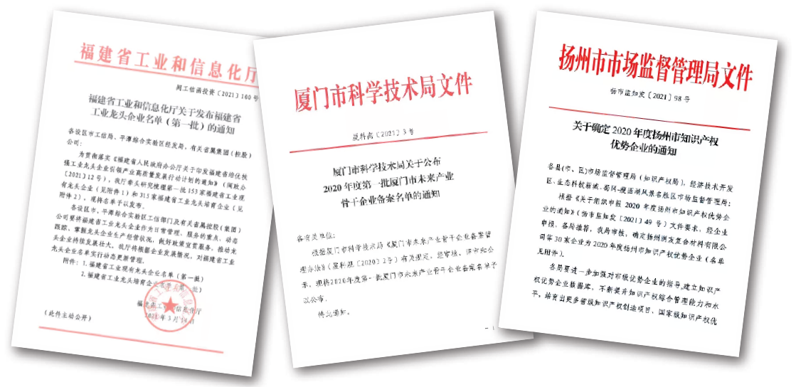 此外,厦门乾照光电入选“福建省工业龙头企业”、“厦门市未来产业骨干企业”;扬州乾照光电入选“扬州市2020年知识产权优势企业”、“扬州市2020年工业百强企业”、“2020年发明专利十强企业”。