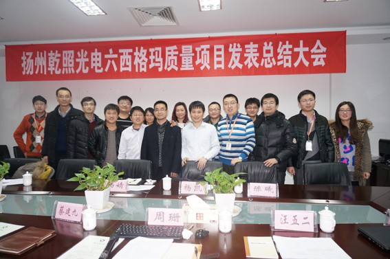 扬州乾照光电有限公司六西格玛质量发表项目总结大会圆满落幕 来源: 发布时间:2014-12-20 2014年12月19日,扬州乾照光电有限公司召开了六西格玛质量发表项目总结大会,并对优秀人才给予了表彰。 此次总结大会中,大家充分交流了先进质量理念、方法及六西格玛管理推动的经验,深入探讨和分享了以质量为核心的实践案例。并且,在此次会议的尾声,为参加六西格玛优秀项目做出演讲的个人颁了培训证书,也充分提高了大家的积极性。 会议结束后,大家合影留念。
