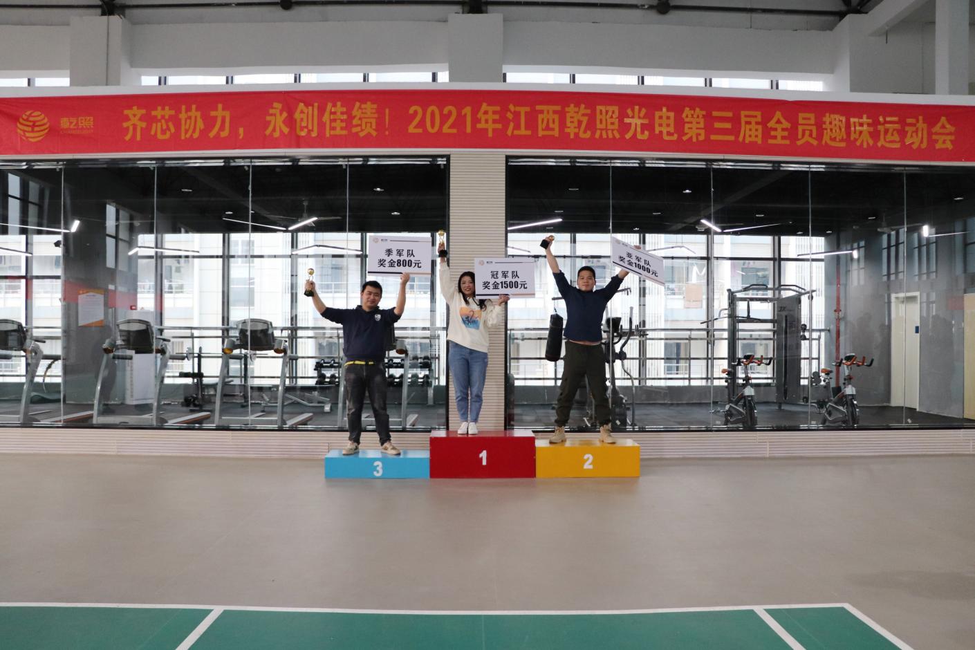 经过多轮紧张而激烈的角逐,来自芯片制造部的超越队、综合部门的综合战队和生管部的乾进队分别斩获了本届大赛的冠亚季军,至此,本届全员趣味运动会圆满收官!