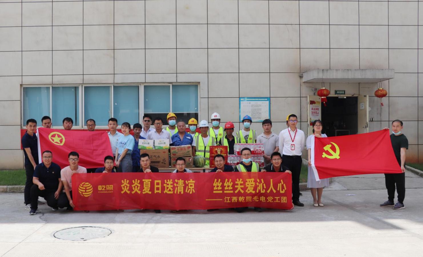 近日,江西乾照光电党工团面向公司全员开展“送清凉、送健康”系列活动。7月初,公司在各部门办公区域和休息区配发了金银花、菊花、甘草、薄荷、山楂等凉茶及藿香正气水、清凉油等防暑降温药品,食堂免费提供绿豆汤等。7月13日,江西乾照光电党支部副书记、工会副主席王玮带队为奋战在一线的保安、保洁、施工人员和消防官兵们送去了矿泉水、凉茶、金银花露水、藿香正气水、清凉油等清凉物资。公司以实实在在的关爱,确保广大职工平安度夏、清凉度夏,舒心度夏。