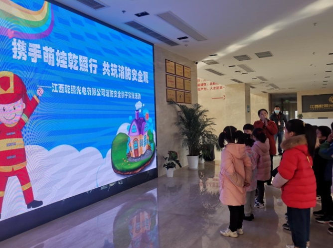 为进一步加强员工及其子女对突发事故的灵活应变能力,培养消防安全意识,掌握消防安全知识和自救、逃生、自我保护的方法,12月2日,江西乾照光电党支部及妇女联合会共同组织公司员工家庭开展主题为“携手萌娃乾照行,共筑消防安全观”的学习实践活动。