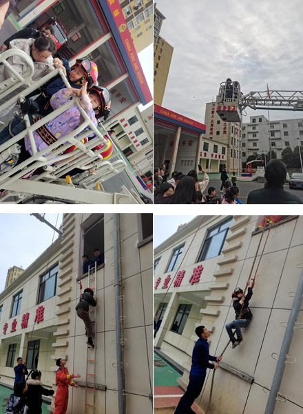 随后,孩子们跟随父母一同来到新建区消防救援大队参观学习体验。在消防叔叔的带领下参观了营区,看到了消防机器人展示,体验了消防云梯车和爬绳挂钩梯等,最后参观了消防车。